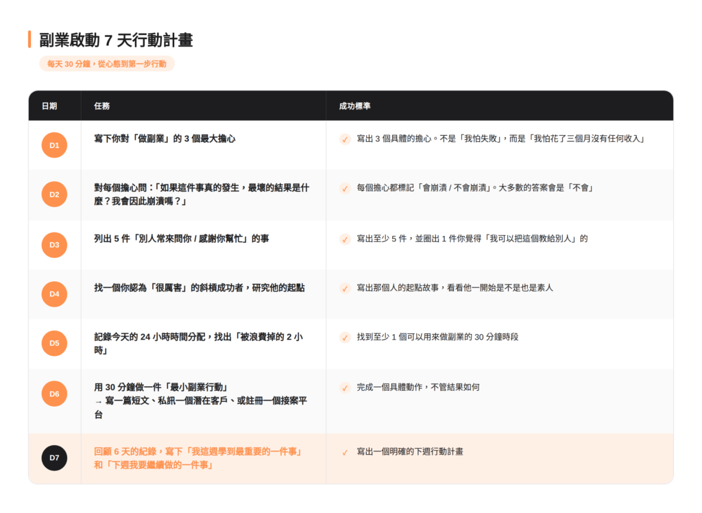 副業啟動7天行動計劃圖表